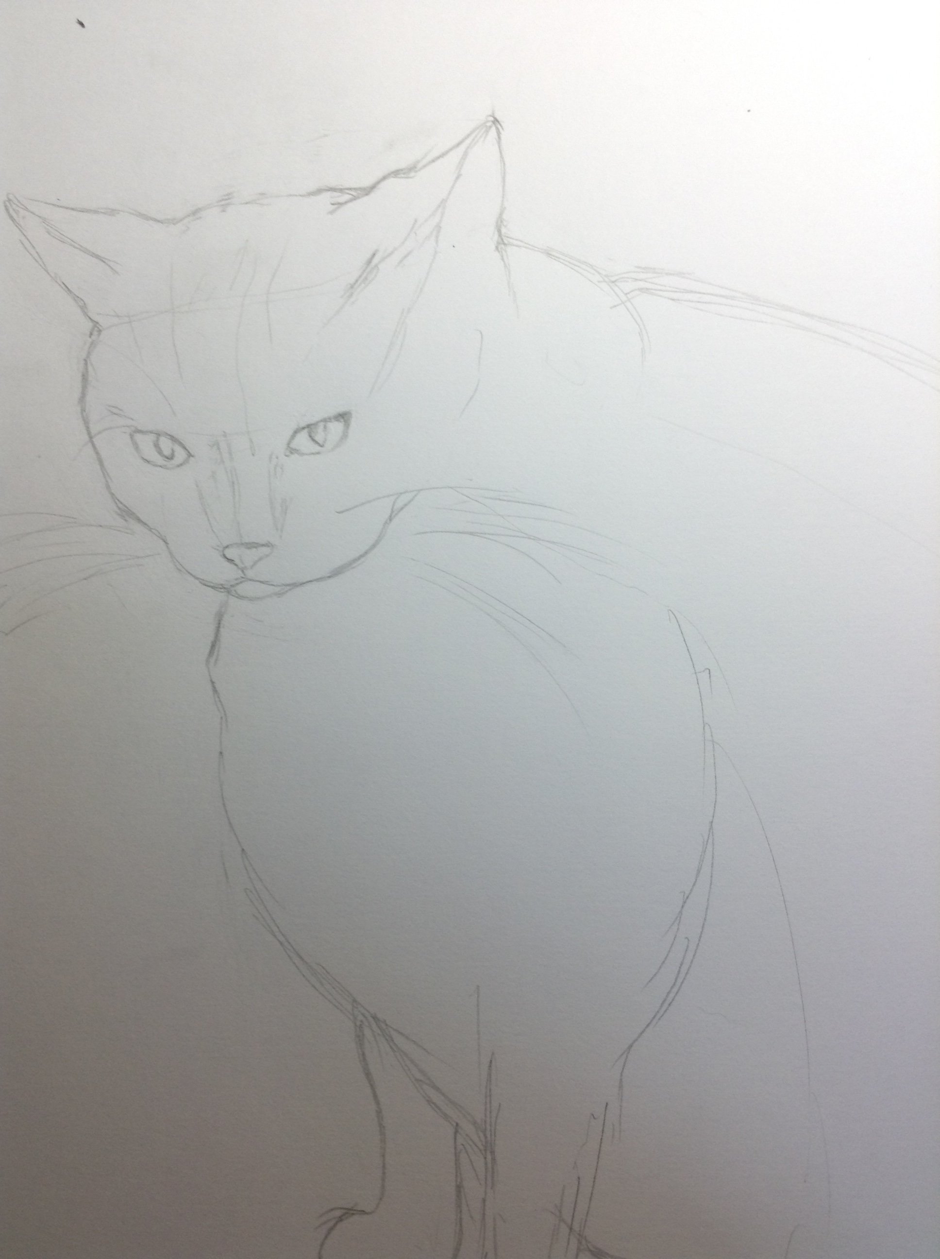 猫のデッサンの下書きです。おかしな所指摘お願いします。猫は太っ